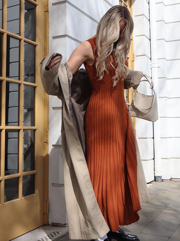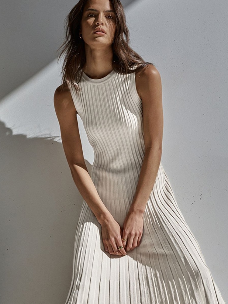 Sleeveless A-Line knitting Women Dress O-Neck Solid Elegant Slim Pleated Female Vestidos 2023 Summer Casual Dresses For Woman