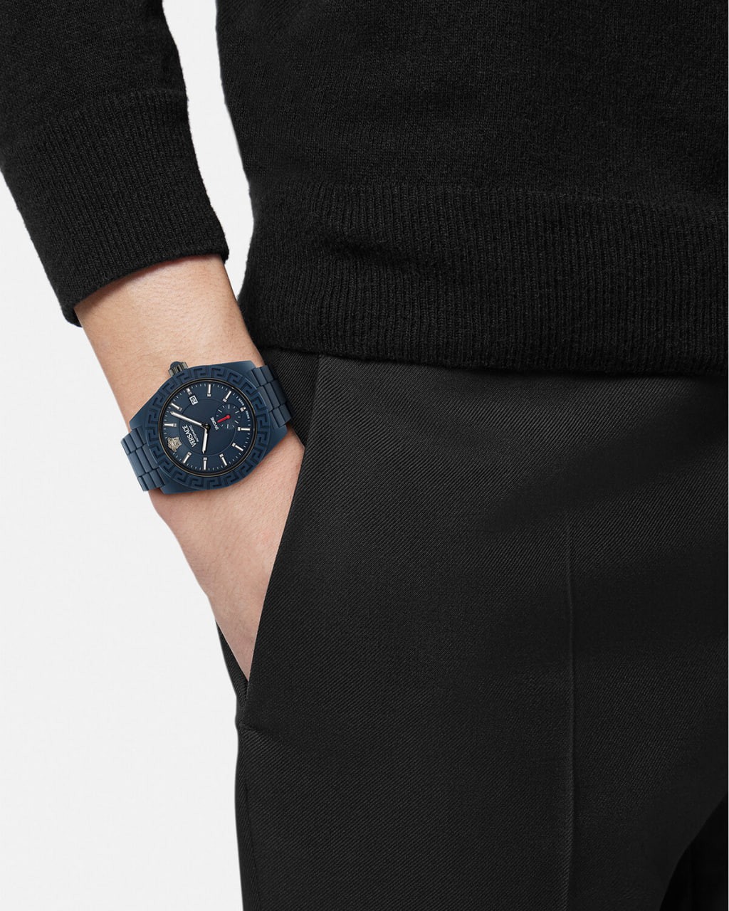 Dial: Black enamel dial with Versace logo and Medusa at 12 o'clock; "DV One" at 6 o'clock