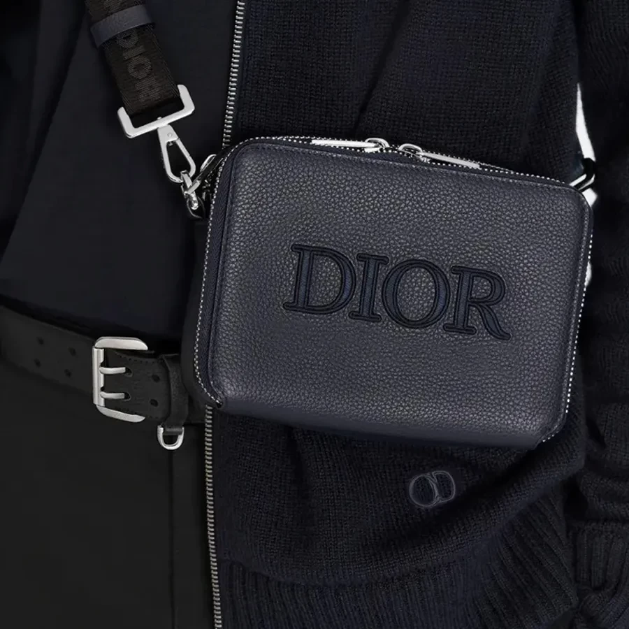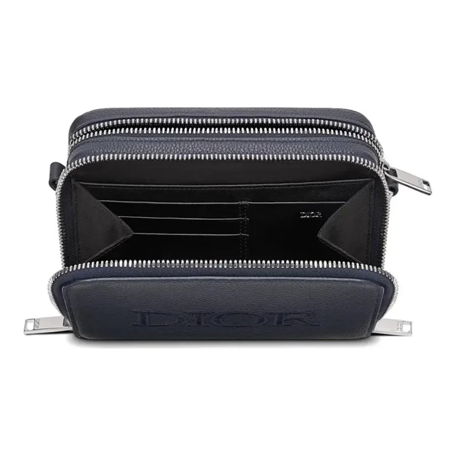 Túi Đeo Chéo Dior Grained Calfskin Messenger Bag Màu Xanh Navy